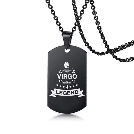 Constellation Tag ID Necklace Black Gold Silver Color Stainless Steel Pendant Necklaces for Men Women 12 Zodiac Jewelry Gift