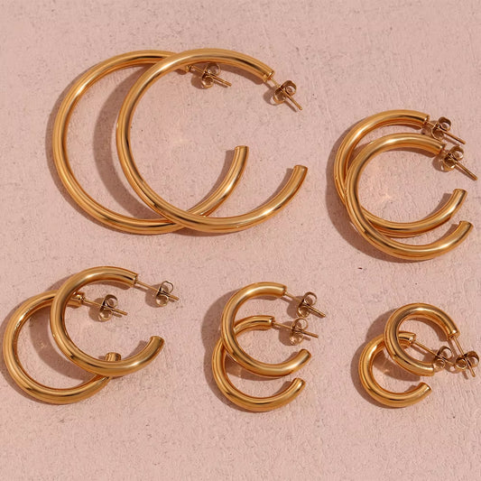 Hypoallergenic Tarnish Free Stainless Steel Hollow Tube Large Medium Small Size Gold Plated Hoop Earrings for Women