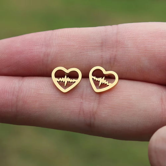 Heartbeat Stud Earrings Nurse Doctor Medical Jewelry Stainless Steel Heart Earrings for Women Gold Silver Color Brincos Feminino